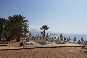 Royal Beach Eilat is run by Royal Beach Hotel, and is a clean, neat sand beach that offers free entrance and easy access to the sea (Also for the disabled). At Royal Beach you will find: a restaurant that offers a variety of delicious dishes with waiters service on the beach, umbrellas and sun beds that can be rented at a price of 14 ₪, toilet and showers and even water sports club offering a range of activities at attractive prices, such as tubing, jet skis, sea parachutes, boats, kayaks and more.