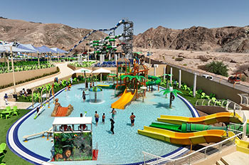 Waterland, located opposite Eilat's Coral Beach is definitely the most refreshing attraction in the city of eternal sun! Come and enjoy innovative water slides with stunning effects, alongside a wave pool, water games for children, and a dedicated area for toddlers. Don't miss out on WaterLand's Adrenaline Zone housing the Kamikaze-x slide towering at 24 meters, the Race WaterLand complex with competitive racing slides, the fast Snake slide, and a twisting, rapid slide. The Adventure Zone offers tube slides and a variety of slides featuring captivating light shows, music, and video content projected onto the water. Our Kiddies Zone, designed as a fairy tale, offers a variety of interactive facilities. In addition to the water activities at WaterLand, you'll find food and hospitality complexes, an amphitheater and a spacious stage for shows, as well as a conference hall for organized group events. The water park operates for most of the year, and during the summer, it operates both during the day and into the night, providing endless fun and excitement.