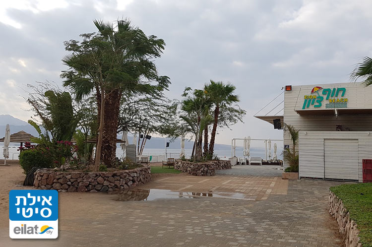 Zion Beach is one of the oldest on the North Shore beaches of Eilat. Leading to the beach are elongated colored lights that comes on at dusk, and a red stone path. On the Western side of the beach there is a restaurant and a kiosk where you can find all kinds of sea products, ice, cold drinks, water pipes, nuts, inflatables and more. The Beach belongs to the No 1 Rescue station on the coast overlooking Papaya Beach and Nike Beach (Neptune). The beach has a small playground for children, including slides and swings. The beach is sandy, soft and clean and you'll find music throughout the day. Along the strip you can find large wooden sheds, canvas umbrellas, low chairs and sunbeds. During the summer holidays and weekends beach parties are held occasionally at the beach for young people visiting Eilat.